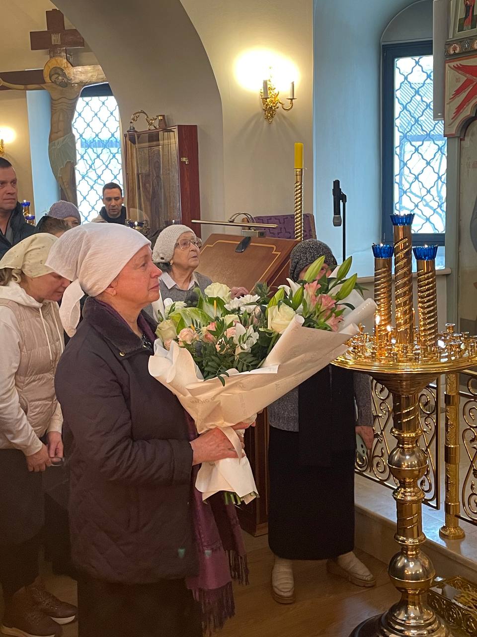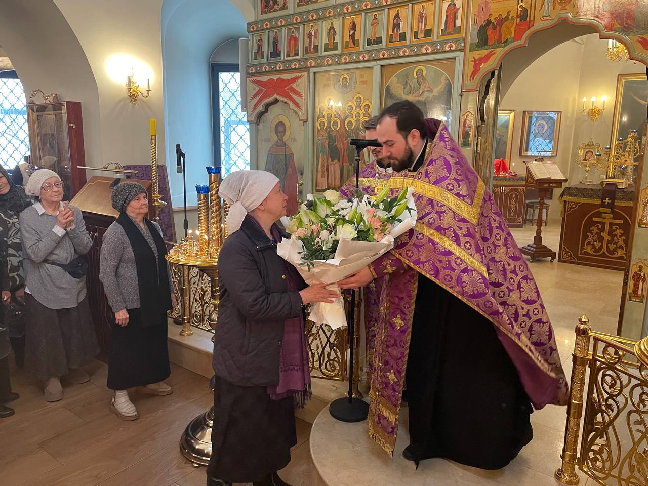 В дар имениннице преподнесли букет цветов и с пожеланиями здравия душевного и телесного, и, конечно же, спасения.
